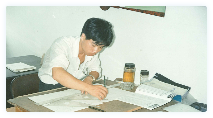 1990年,年輕的李海周懷揣著夢想,只身來到深圳拼搏。期間,有幸遇到了他的第一位模具師傅——來自北京的老工程師江祥豐。